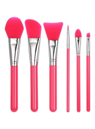 6 فراشي للمكياج من السيليكون أحمر وردي/ فضي