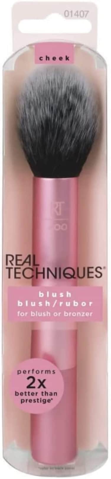 فرشاة أحمر الخدود من ريل تكنيكس مصنوعة بمقبض ممتد من الالومنيوم وخفيفة الوزن، مما يجعلها سهلة الاستخدام والتنظيف وسريعة الجفاف؛ كما تساعد الألياف الناعمة للفرشاة على خلق لمسة نهائية عالية الدقة خالية من العيوب