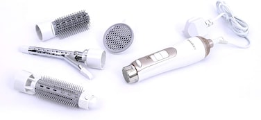 5 في 1 تسريح شعر ، سرعة واحدة و 3 إعدادات حرارية مع وظيفة رائعة ، سلك دوار 360 درجة ، قطع أمان ، 4 ملحقات تيار متردد: 220-240 فولت ، 50-60 هرتز ، 800 واط