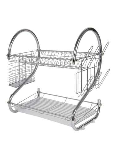 حامل أطباق قابل للتجميع مكون من مستويين فضي