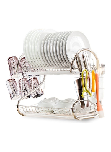 جينيريك رف تجفيف الصحون من ستانلس ستيل من طبقتين مع لوح تجفيف قابل للإزالة أبيض 41.50 x 14.00 x 25.50سم