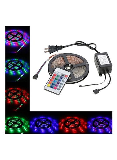شريط إضاءة LED بجهاز تحكم عن بُعد بعدد 24 مفتاح مع محول طاقة للتحكم عن بُعد متعدد الألوان