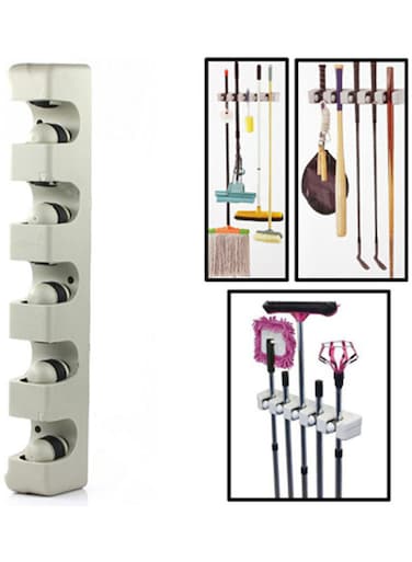 Wall Mounted 5 Positions Mop Broom Holder Tool with 2 Hooks متعدد الألوان
