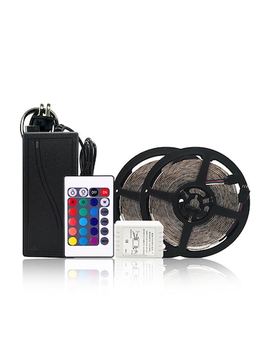 شريط إضاءة LED مضاد للماء مزود بجهاز تحكم عن بعد ومحول طاقة أسود