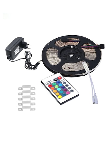 شريط إضاءة LED مضاد للماء بإضاءة متعددة الألوان RGB مزود بجهاز تحكم عن بعد أسود/ أبيض