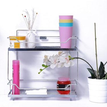 يحتوي رف رويال فورد القائم متعدد الأغراض ذو الطبقتين على أرفف عريضة وطويلة لحمل الكثير من التوابل والبرطمانات والعلب والعلب والتوابل والحبوب ومطحنة الملح والفلفل أو العناصر المنزلية مثل اللوشن والمكياج وطلاء الأظافر ومناشف الوجه والمنظفات والصابون والشامبو وأكثر من ذلك بكثير ويمكن الوصول إليه بسهولة عند الطهي أو الخبز. صناعة مثالية ومنحنيات ناعمة وحرفية رائعة تحمي يدك من الخدوش. يمكن لرف التوابل رويال فورد أن يحافظ على مطبخك مرتبًا ومنظمًا.