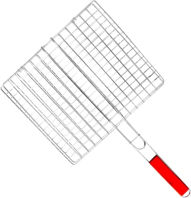شواية لحوم حديدة مطلية بالكروم قابلة للطي بمساحة شواء اكبر ومقبض خشبي لشواء السمك والخضروات والروبيان، RF10382