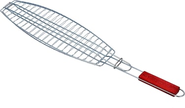 شواية حديد مطلية بالزنك للسمك RF10386- الشواية بتصميم شبكي قابل للطي والحمل مع يد خشبية ومقاومة للصدأ تمنحك مساحة كبيرة لشواء السمك والخضروات والروبيان