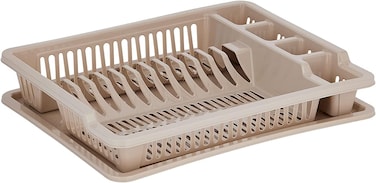 مصفاة اطباق كبيرة من رويال فورد، RF10883، رف اطباق بلاستيكي عالي الجودة مع صينية تصفية قابلة للفصل، حامل ملاعق وادوات مائدة ومنظم اطباق للمطبخ وسلة تجفيف اطباق، زهري فاتح