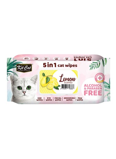 مناديل مُبللة مُخصصة للحيوانات الأليفة 5 في 1 برائحة الليمون متعدد الألوان 20سم