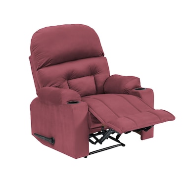- إن هاوس كرسي استرخاء سينمائي هزاز ودوار منجد بالمخمل مع حامل أكواب - زهري غامق - NZ80