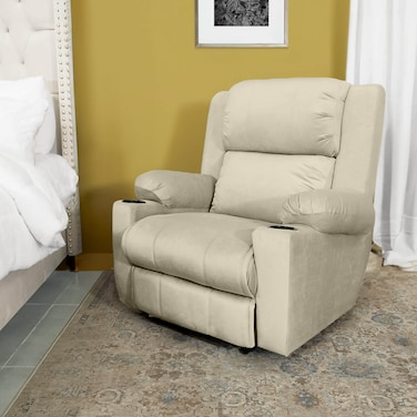 - إن هاوس كرسي استرخاء سينمائي هزاز ودوار منجد بالمخمل مع حامل أكواب - بيج فاتح - ليزي تروي