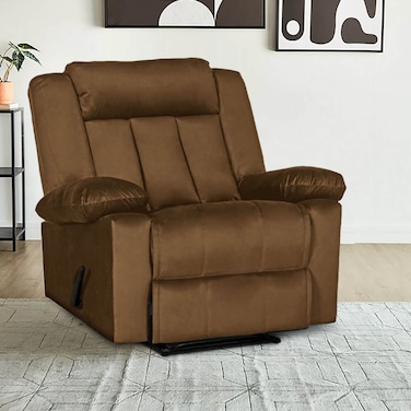 - إن هاوس كرسي استرخاء هزاز ودوار منجد بالمخمل - بني - AB05