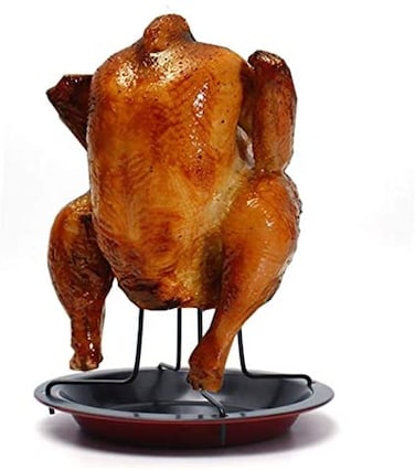 أدوات الشوي الأفضل للحدائق، شواية دجاج عمودية بوعاء تقطير معدن كربوني، أدوات واكسسوارات طبخ وشوي غير لاصقة