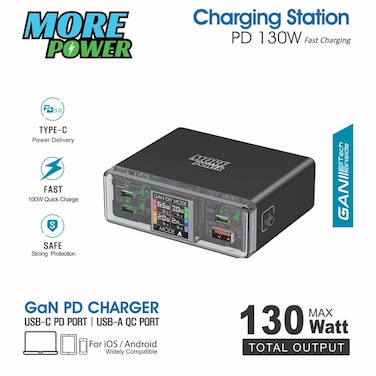 تقدم منصة شحن مور بور حلاً مبتكرًا لشحن جميع أجهزتك الإلكترونية بكفاءة وسرعة. مع قوة شحن تصل إلى 130 واط، تضمن لك هذه المنصة شحنًا سريعًا وفعالًا، مما يوفر لك الوقت والجهد.