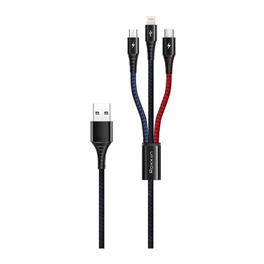 روكسون كيبل 3 في 1 لايتنينج+مايكرو+تايب سي, 1.2 متر