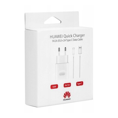 هواوي شاحن سريع 9 فولت 3 دبابيس مع سلك تايب سي ، ابيض