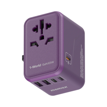 شاحن وفيش سفر موماكس بتقنية الشحن السريع GaN PD بـ 5 منافذ وبقوة 65 واط UA8U - بنفسجي