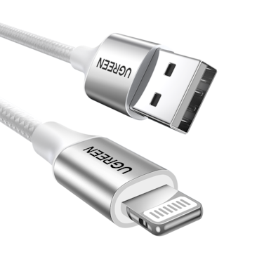 سلك شاحن يوجرين من USB إلى آيفون مضفر بطول 2 م - فضي