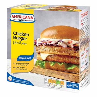 أمريكانا - برجر دجاج غير مخبوز 672 جرام (12 قطعة)