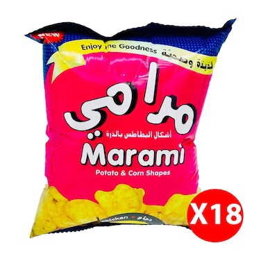 مرامي أشكل بطاطس بالذرة بطعم دجاج 14 جرام × 18