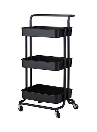 حامل رفوف للتنظيم من المعدن مزوّد بعجلات ومكوّن من 3 رفوف أسود 87x36x43سم