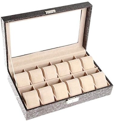 هيكل منظم للساعات جلد 12 قطعة - اسود