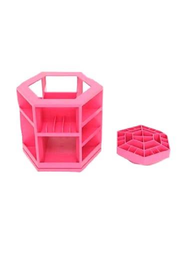 صندوق تخزين أدوات التجميل قابل للدوران وردي