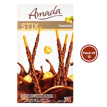 أمادا أصابع بسكويت مغطاة بالشوكولاتة والبندق 32جرام ×12