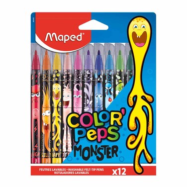 Bring colors to life with the Maped Color Peps Monster Coloring Felt Tip Pen Set. This dynamic set comes with 12 colorful pieces that your little ones will absolutely adore. The pens are brightly colored, fun, and super easy to use. Each pen features a monster theme that adds an exciting twist to every drawing or coloring project.