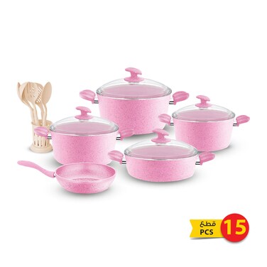 بامكو طقم قدور طبخ جرانيت فاخر مع غطاء زجاجي 15 قطعه