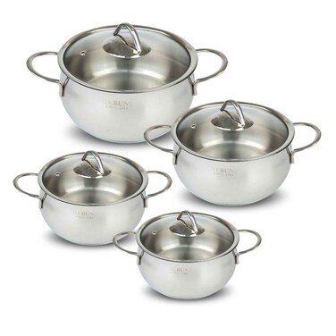 Suitable for use in various cooking surfaces and including pots/pans of different sizes, the Westinghouse 4-Piece Pot and Pan Set is an ideal choice for handling various recipes and cooking styles. The Westinghouse 4-Piece Pot and Pan Set features a stainless steel construction, impact bonding base, and heavy-duty riveted handles to withstand frequent usage. Each of the saucepans and casserole pots include tempered glass lids for a clear view during cooking. The lids also have steam vents to quickly relieve pressure. This pot and pan set is suitable for use on most surfaces, including induction, electric, and gas. For cleaning convenience, this Westinghouse pot and pan set is dishwasher safe.