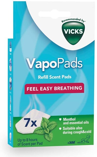 توفر أجهزة Vicks VapoPads ما يصل إلى ثماني ساعات من أبخرة المنثول المهدئة للإغاثة المؤقتة من السعال والازدحام. ما يصل إلى 8 ساعات من الراحة المهدئة لكل وسادة يحتوي على سبعة من المنثول VapoPads® وسادات معطرة استخدم فقط على الأطفال الأكبر سنا من 36 شهرا