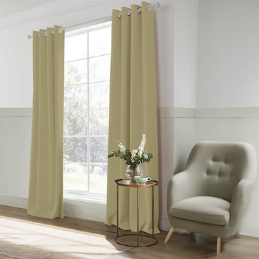 زوج من الستائر العازلة للحرارة مصنوع من قماش عالي الجودة وأنيق مصمم لإضفاء لمسة من الرقي على الديكورات الداخلية.