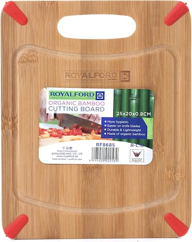 لوح تقطيع مصنوع من خشب الخيزران الطبيعي من رويال فورد - لوح تقطيع كبير للمطبخ (25 × 20 × 0.8) سم - لتحضير الطعام واللحوم والخضروات والخبز والجبن - قوي ومتين وخفيف الوزن