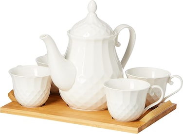 رويال فورد رويال فورد طقم شاي مع صينية من الخيزران، ابيض، بورسلين