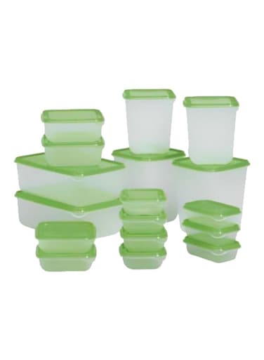 طقم علب تخزين 17 قطعة شفاف / أخضر