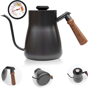 ابريق تحضير القهوة بطريقة التنقيط مع مقبض خشبي لعزل الحرارة مع ميزان حرارة مناسب لعشاق القهوة المتميزة سعة 850 مل من ميبرو