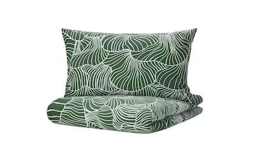 - <p>Duvet cover and pillowcase, dark green/white150x200/50x80 cm