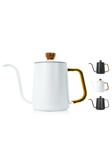ابريق غلاية تقطير قهوة 600 مل ابيض بتصميم معقوف مناسب للتقطير اليدوي