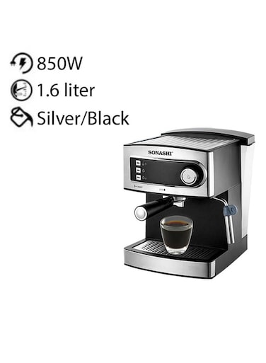 ماكينة صنع قهوة إسبريسو وكابتشينو ولاتيه الكل في واحد من الستانلس ستيل بضغط 15 باراً 1.6 لتر 850 وات SCM-4965 فضي/أسود