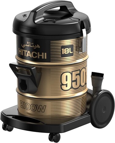 مكنسة كهربائية من هيتاشي، من نوع البرميل، سعة 18 لتر، 2100 واط، اسود - CV-950H SS220 BK