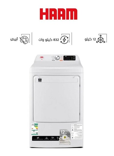 هام مجفف ملابس، 12 كجم، أبيض، HMDR120W-23AM (غير شامل التركيب)
