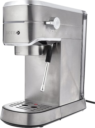 ماكينة تحضير اسبرسو لقهوة اسبريسو وكابتشينو من دوتس، مع صانع رغوة الحليب وعصا بخار، ماكينة تحضير القهوة والاسبريسو لللاتيه والكابتشينو، CFM-541، فضي