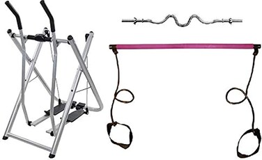 فتنس وورلد الغزال الطائر لحرق الدهون، فضي مع ستوديو تمارين مع قضيب حديد متعرج لرفع الأثقال ، اللون الفضي