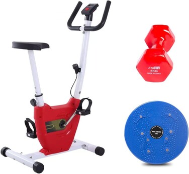 فتنس وورلد دراجة تمارين و تنحيف، أحمر، CF-937A مع عجلة التمارين الرياضية للذراعين والصدر ومع بساط تمارين اليوجا فتنس وورلد
