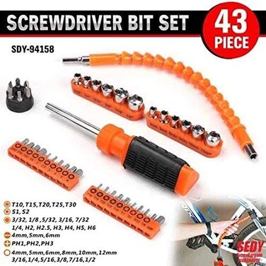 طقم رؤوس مفكات مرنة 43 قطعة لون برتقالي (SDY-94158) - هوردي