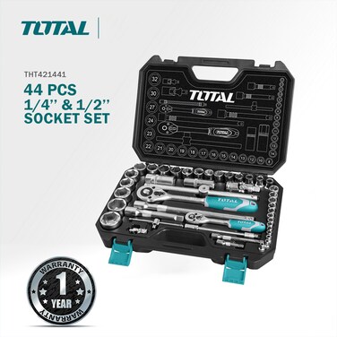 طقم توتا ال عالي الجودة 44 قطعة 1/4 "+1/2" مجموعة أدوات المقبس الصناعي الموديل: THT421441