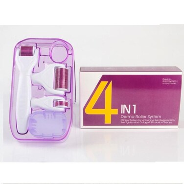 بكرة مكونة من الإبر لعلاج تجاعيد الوجه 4 في 1 من ديرما رولر أبيض، DR4-1
