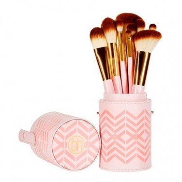 طقم فرش مكياج مكون من 10 قطع وردي/ذهبي من بي اتش كوزماتيكس